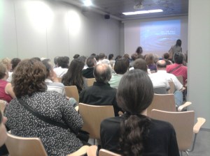 No me enredo más y paso a la presentación del documental “VOCES” y el cortometraje “ESCÚCHAME”. Nada más dar comienzo a la presentación, Lozano agradecía la gran afluencia de público al evento – se tuvieron que poner más sillas porque no cabíamos todos- pero añadía: “estaría bien que hubiera más todos”. En la sala había unas 30 personas, de los cuales apenas 5 ó 6 eran hombres. La realizadora explicaba su comentario alegando “tenemos la manía de sensibilizar a las que ya estamos sensibilizadas”.