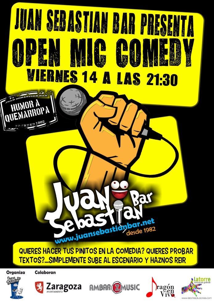El emblemático local zaragozano Juan Sebastian Bar, regentado por el cómico Mariano Bartolomé, presenta este mes de abril la primera edición del ‘Open Mic Comedy’ de la capital aragonesa. Se trata de una experiencia pionera en el mundo del humor y la comedia. «Todo el que se atreva o simplemente quiera probar suerte, y sueñe con convertirse en un verdadero cómico de monólogos, tiene la oportunidad de subir al escenario del Juan Sebastian Bar y demostrárselo a nuestro público y a los miembros del Club Desastre».