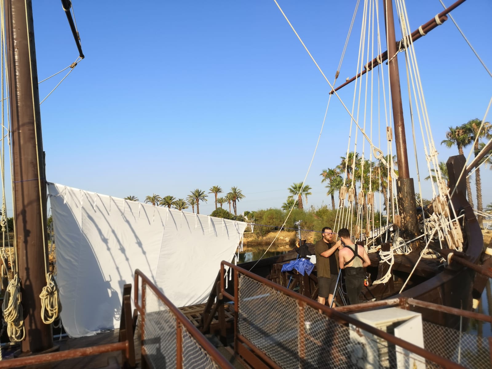 Este fin de semana, el equipo aragonés de la película ‘Libros: el legado de Alantansí’ se desplazaba hasta Andalucía, a la provincia de Huelva, y más en concreto hasta el Muelle de las Carabelas, en Palos de la Frontera, el cual se convertiría gracias al apoyo de la Diputación Pronvincial de Huelva en el escenario de buena parte de la ficción de la obra, protagonizada por el actor zaragozano Rubén Martínez.
