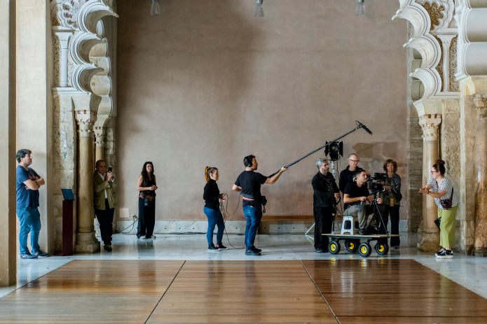 Varios rincones del palacio se transforman durante tres jornadas en el set del rodaje del nuevo cortometraje del director zaragozano.