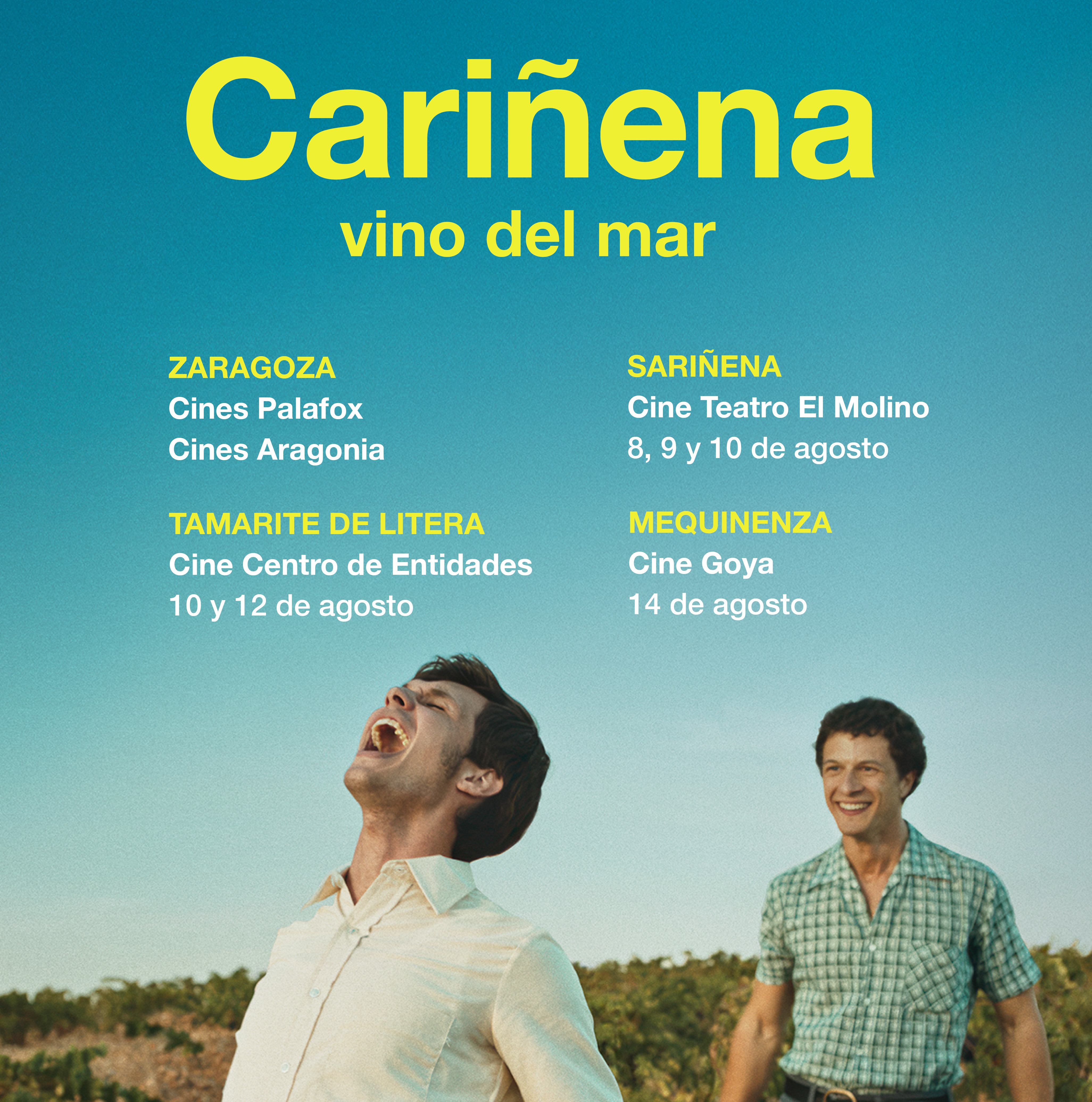 La película ‘Cariñena, vino del mar’, dirigida por el zaragozano Javier Calvo, aterriza este fin de semana en la localidad de Sariñena. Después del éxito cosechado en Zaragoza, donde, tras sietes semanas en cartelera, ya ha sido vista por casi 9.000 espectadores convirtiéndose en la película sorpresa del verano, continúa su recorrido por Aragón.