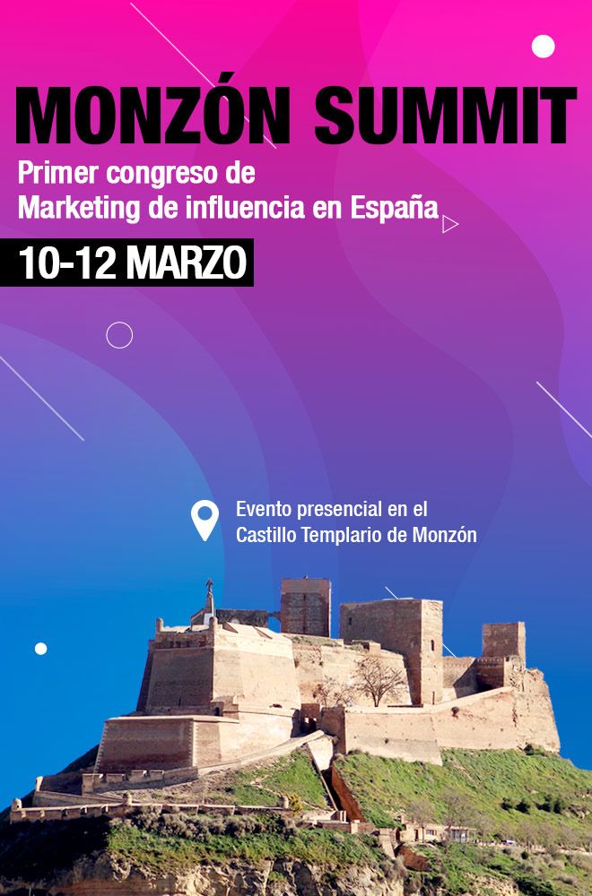 La influencia como fenómeno de comunicación y como herramienta para las estrategias de marketing será la protagonista y el eje conductor de Monzón Summit, primer Congreso de Marketing de Influencia de España que se desarrollará los días 10, 11 y 12 de marzo en el castillo templario de Monzón. Una cita que reunirá a los mayores profesionales del sector en la localidad oscense y que pretende abrir un espacio de reflexión sobre la importancia del marketing de influencia hoy en día, en la realidad actual que suponen el merco y las marcas.