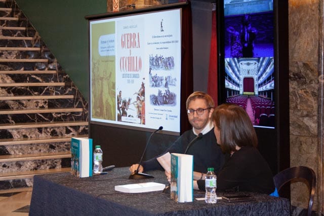 El pasado 9 de marzo, coincidiendo con la V Recreación de los Sitios de Zaragoza en la capital aragonesa, tuve el honor de presentar el nuevo libro del historiador Daniel Aquillué en el Teatro Principal de Zaragoza: Guerra y cuchillo. La obra propone una nueva visión sobre este episodio clave de la Guerra de la Independencia, del que La Esfera ha publicado dos ediciones.