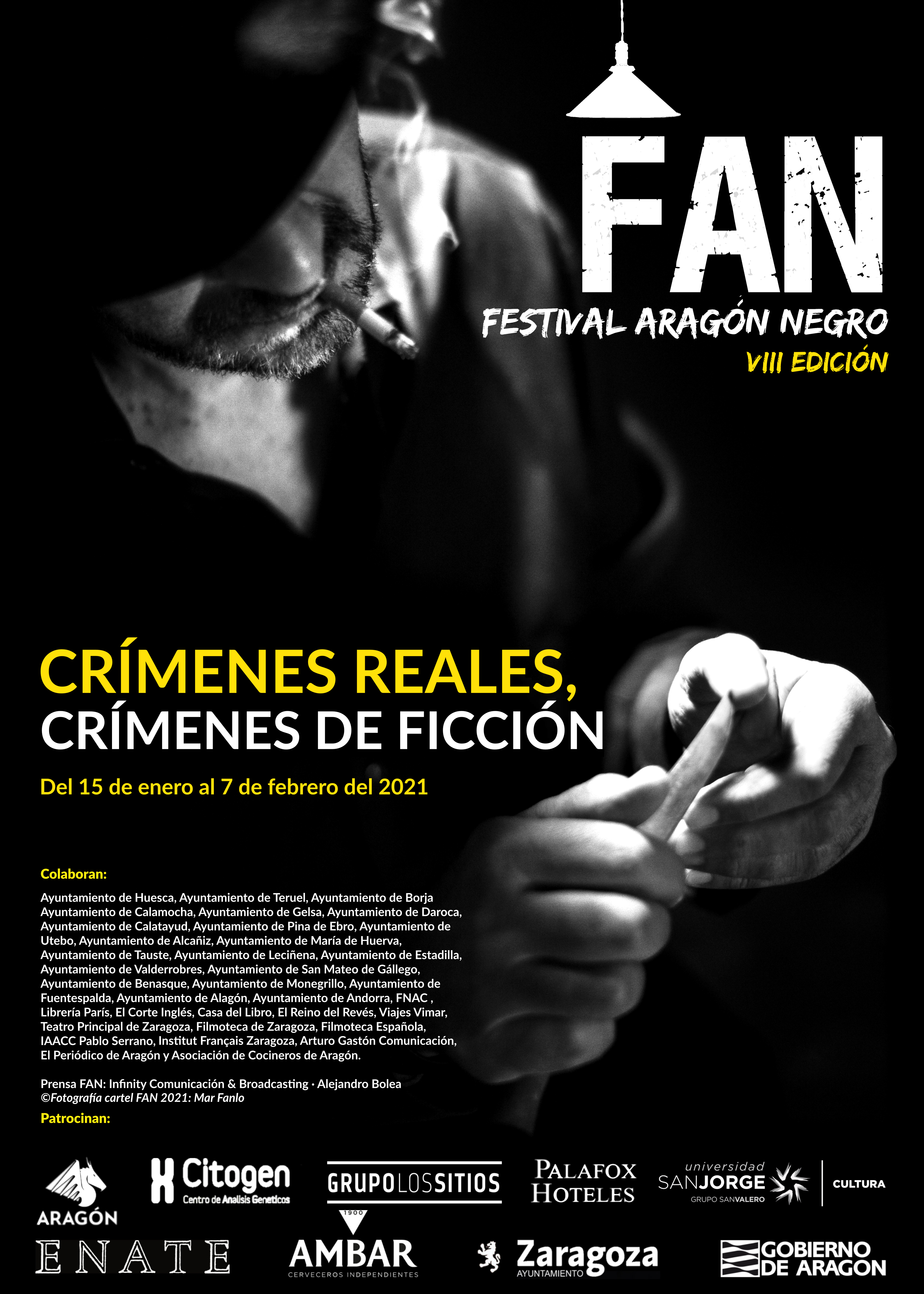 Este jueves, 14 de enero, a las 12.00h., tendrá lugar la rueda de prensa de presentación de la VIII Edición del Festival Aragón Negro (FAN)en el Teatro Principal de Zaragoza. Se trata de una edición marcada, como no podía ser de otra manera, por la pandemia, y para la que se ha llevado a cabo un gran esfuerzo para poder sacar adelante esta convocatoria cumpliendo todos los requisitos y las medidas sanitarias necesarias.