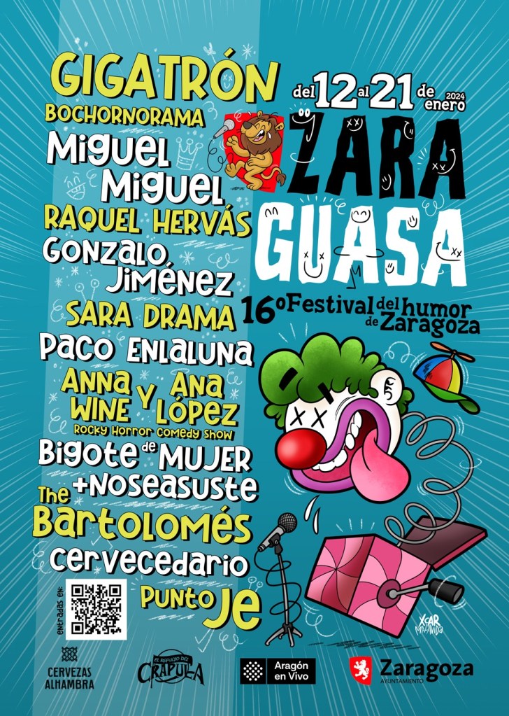 El conocido festival del humor de Zaragoza se celebrará del 12 al 21 de enero de 2024. once días de comedia.